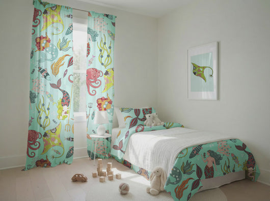 Design: Hand-illustrated mermaids and sea creatures in bright colours