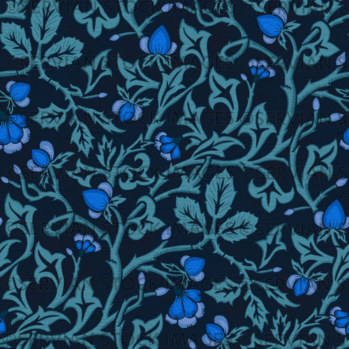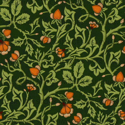Vintage Floral 1 is a rich, vibrant design inspired by Art Nouveau, Arts and Crafts, and the work of William Morris. On purchasing this design, you will receive 12 files: 4 JPEGs with the seamless pattern tile in 4 colourways, 4 PNG versions with no background, and 4 single motifs with no background that do not repeat, All files are 300dpi, 3,600 pixels square.